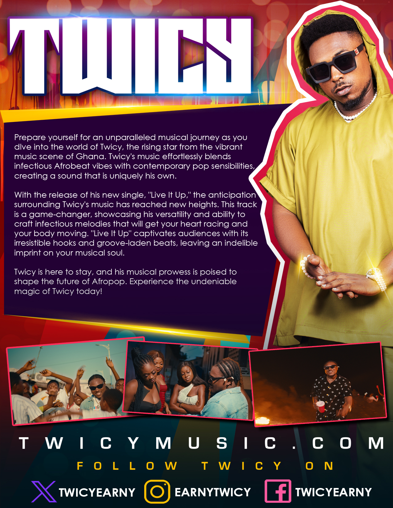 TWICY (ONE SHEET BIO) October 8, 2025Print 0 8 Previous post VERONICA NORIEGA (ONE SHEET BIO) Next post TAJ LONJINO (ONE SHEET BIO) Share facebook twitter pinterest tumblr stumbleupon linkedin